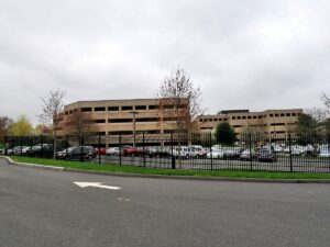 It hosts three 1983-vintage office buildings totaling 472,536 square feet of space plus a 1,160-spot parking garage dating to 2005, a helipad and a former daycare facility across 65 acres next to Exit 49 on I-91.